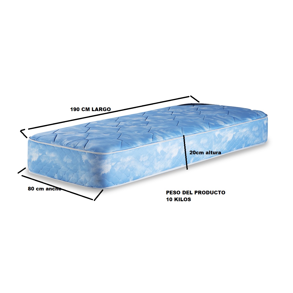 * Altura 20 cm, ancho 80, largo 190 cm